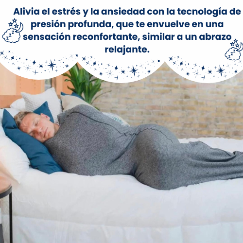 Esto envía señales de relajación a tu cerebro: Esta suave compresión de cuerpo completo imita la sensación de ser abrazado, estimulando los receptores de serotonina en el cerebro.